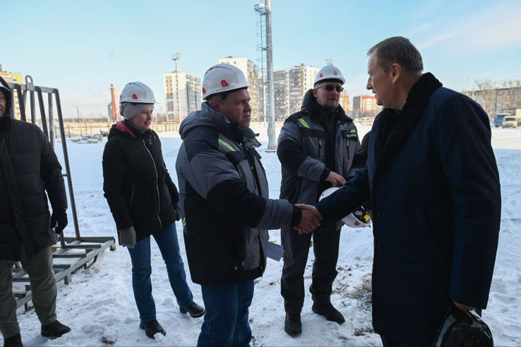 Губернатор Ленинградской области Александр Дрозденко проинспектировал площадку школы, которая строится по международному соглашению с белорусской компанией.