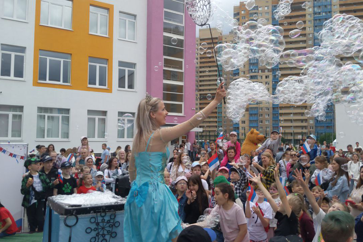 Дети с радостью лакомились попкорном, сладкой ватой и мороженым. Разучивали русские народные танцы с ведущими, а на стадионе с помощью карты и компаса искали неизвестную им трассу. Обязательными атрибутами праздника были ростовые куклы, аквагрим и шоу мыльных пузырей.