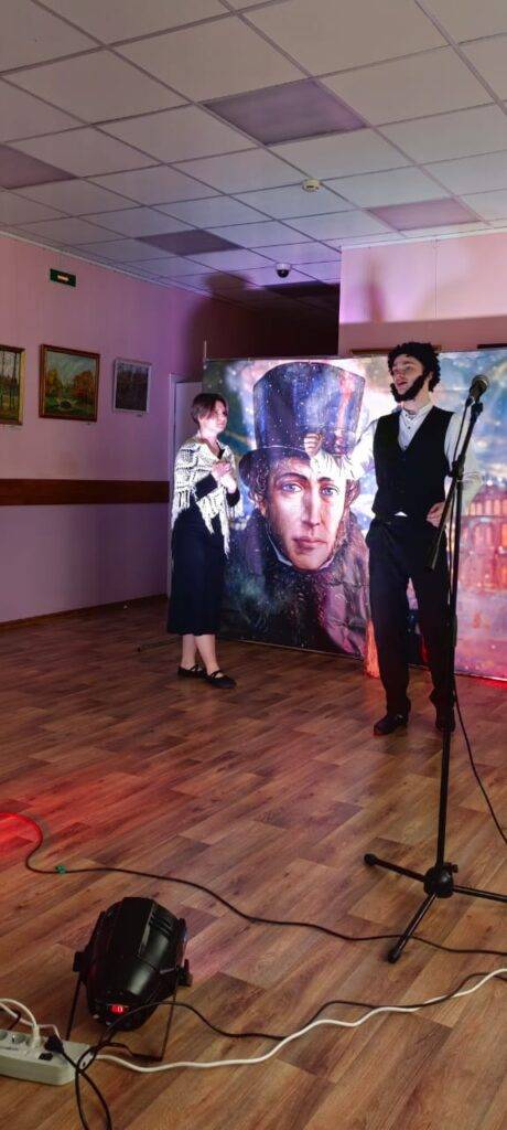 Студенты показали спектакль «Пушкин. Выстрел судьбы в бессмертие». Благодаря проникновенной музыке, песням, игре артистов, зрители будто проживали жизнь Пушкина вместе с ними, пропуская её сквозь себя, представляя себя на месте главного героя, и каждый хотел бы направить развитие событий к лучшему.
