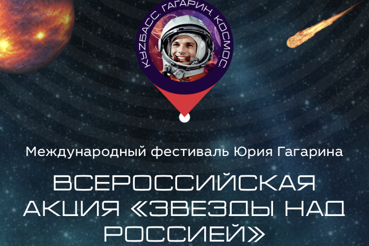 Каждый россиянин может зажечь звезду над своим городом на портале https://zvezdykuzbass.ru . Старт всероссийской акции «Звезды над Россией» дали в рамках III Международного фестиваля Юрия Гагарина на выставке Россия на ВДНХ. Каждый желающий на портале может зажечь свою звезду на небе, которая будет «активирована» 12 апреля на гала-концерте фестиваля Юрия Гагарина.