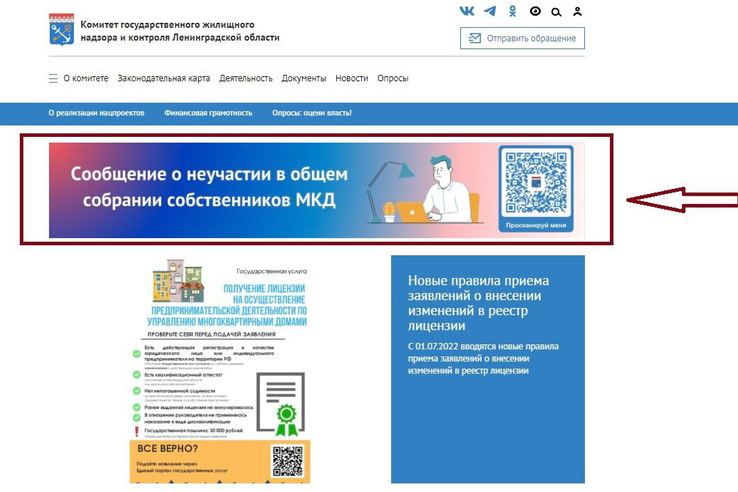 Госжилнадзор запустил новый сервис для жителей Ленинградской области. Заявить о неучастии в собрании собственников жилья можно на портале ведомства по ссылке .