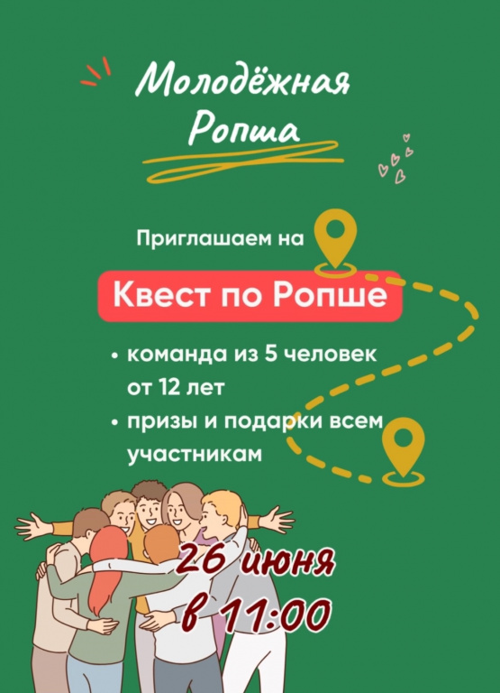 Мероприятие проведёт Молодёжный совет Ропшинского сельского поселения. Оно состоится 26 июня в 11:00.
