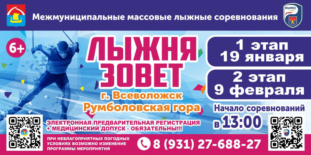 Приглашаем 19 января и 9 февраля 2025 года в 13:00 всех желающих принять участие в межмуниципальных массовых лыжных соревнованиях "Лыжня зовет!".