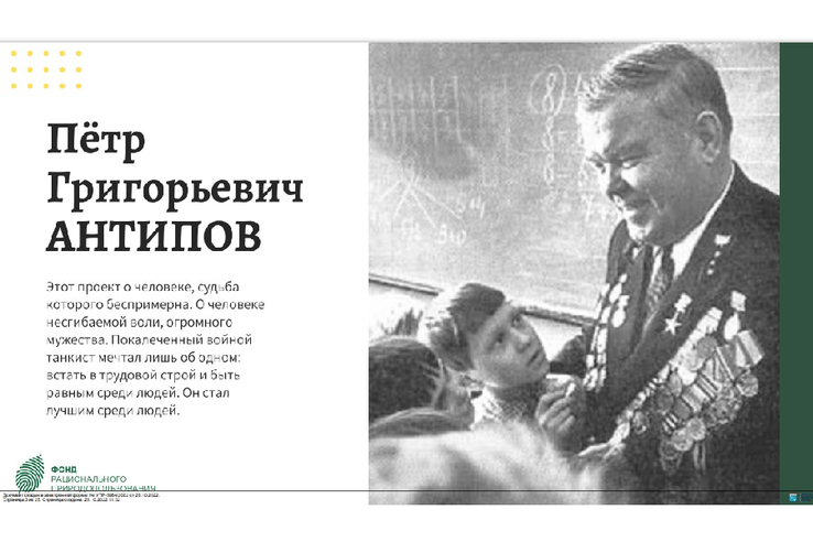 «Петр Григорьевич – настоящий Герой, участник Великой Отечественной войны. Он известен не только фронтовыми подвигами, но и трудовыми. Он стал первым в стране работником лесного хозяйства, получившим звание Героя Социалистического Труда. Благодарю коллег за поддержку инициативы. Уже в 2024 году будет учреждена ведомственная награда — Знак отличия имени П. Г. Антипова. Первые награждения также состоятся в этом году», – рассказала Ольга Занко.