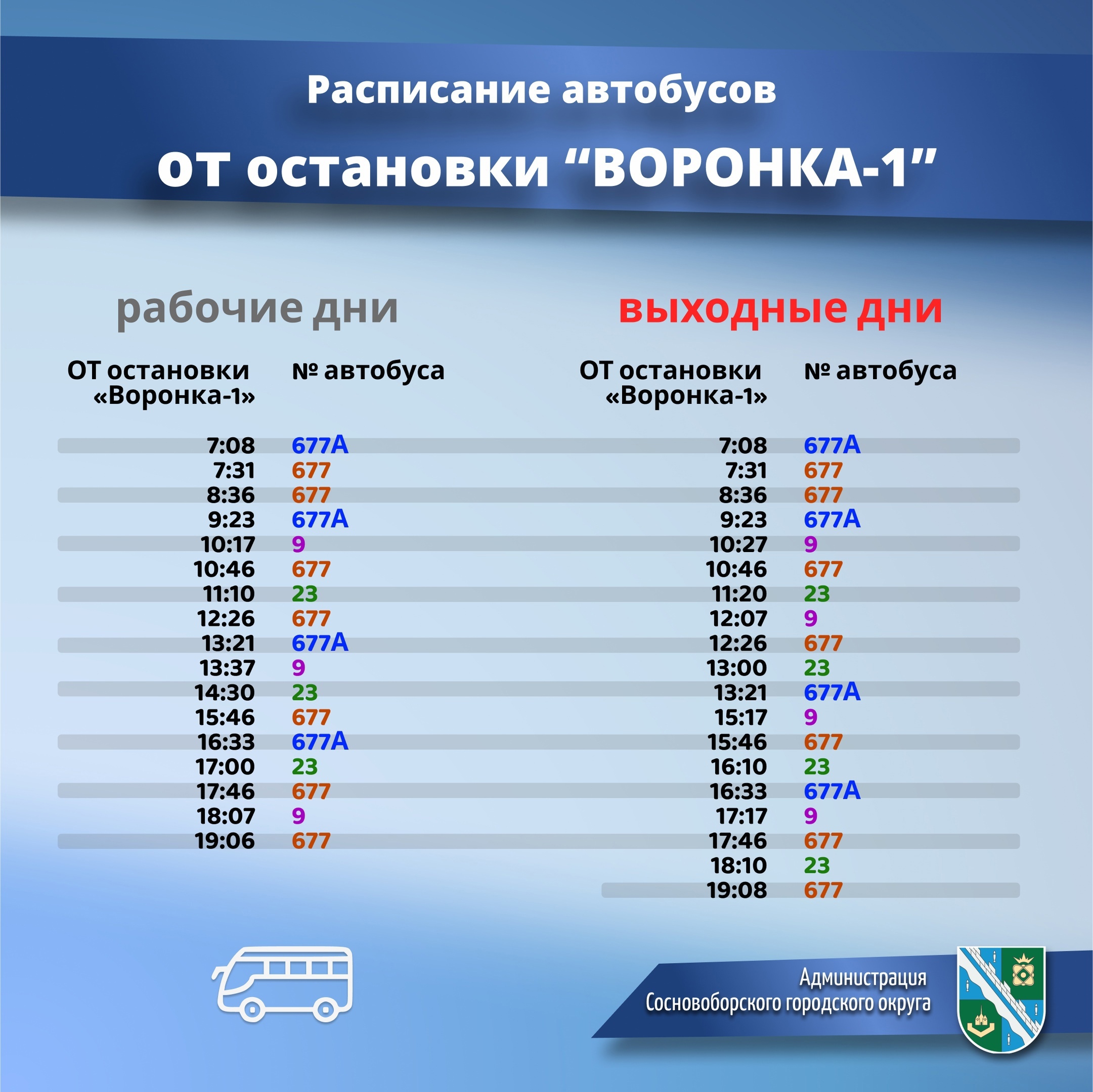 Сводная таблица по расписанию автобусов от остановки