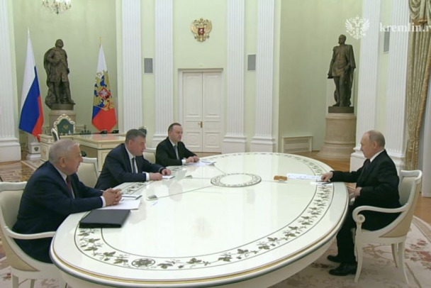 Фото: кадо из видео, опубликованного в Telegram-кканале "Кремль.Новости" В Кремле проходит встреча Владимира Путина с кандидатами, баллотировавшимися на выборах президента России.