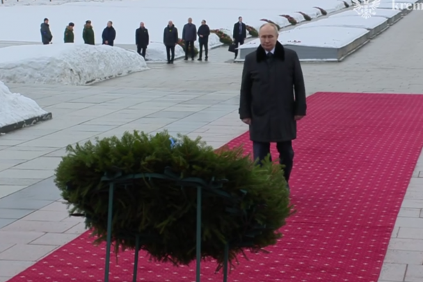 Фото: скриншот видео Владимир Путин в юбилей освобождения города от фашистской блокады возложил цветы у мемориала Матери-Родины и братской могилы.