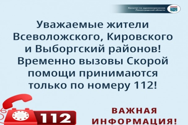 Комитет здравоохранения Ленобласти сообщил, что вызовы скорой помощи в трех районах Ленобласти временно принимаются только по номеру 112.