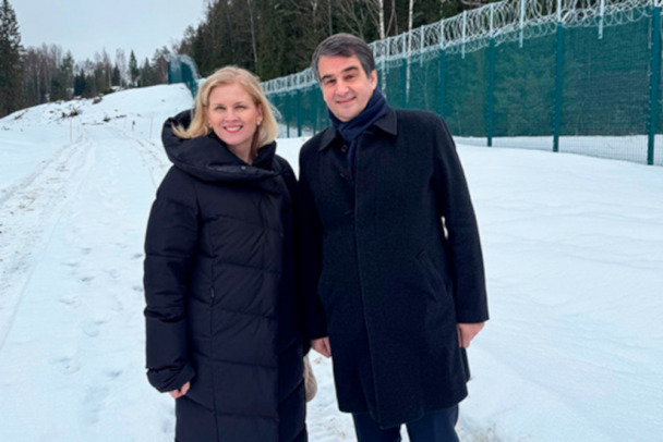 Ассоциация опубликовала фото, на котором можно видеть европейского политика рядом с пилотным участком Восточного пограничного барьера — забора, который Суоми возводит на границе с Россией.