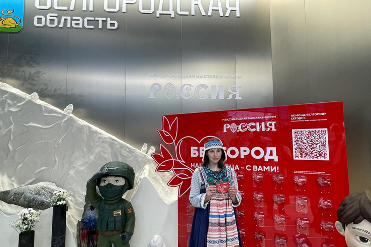 В рамках акции «Белгород, наши сердца — с вами» на стенде Белгородской области подготовлена большая программа мастер-классов, выставок, мероприятий. В 13.00 жители Ленинградской области присоединились к акции в национальных костюмах региона и в прямом эфире увидели, как идет восстановление дома на улице Щорса, 55 после обстрела врага.