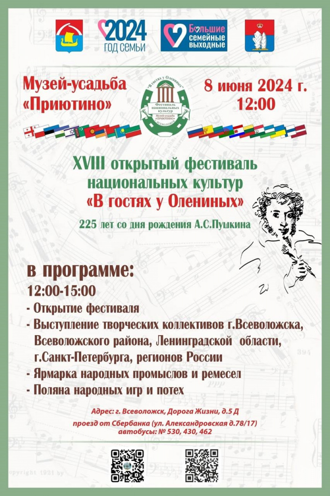 Приглашаем 8 июня 2024 года в 12:00 жителей и гостей города на открытый фестиваль национальных культур "В гостях у Олениных".