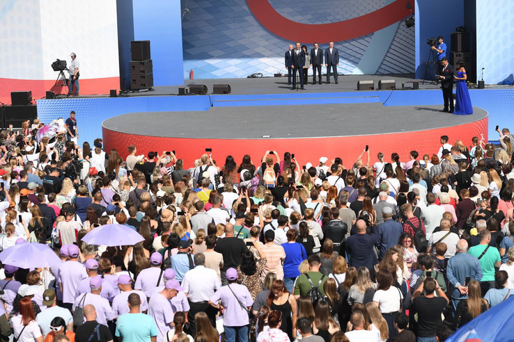 На сцене праздника в Кудрово ленинградцев поздравили: директор СВР Сергей Нарышкин, заместитель полпреда Президента РФ в СЗФО Любовь Совершаева и губернатор Санкт-Петербурга Александр Беглов.