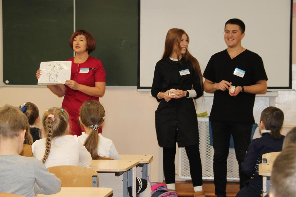 В завершение занятия школьники и учителя поблагодарили гостей за интересную беседу, а врачи подарили ребятам «зубик-раскраски» и зубные щетки, которые будут напоминать им, что для здоровья зубов и красивой улыбки нужен правильный уход за полостью рта.